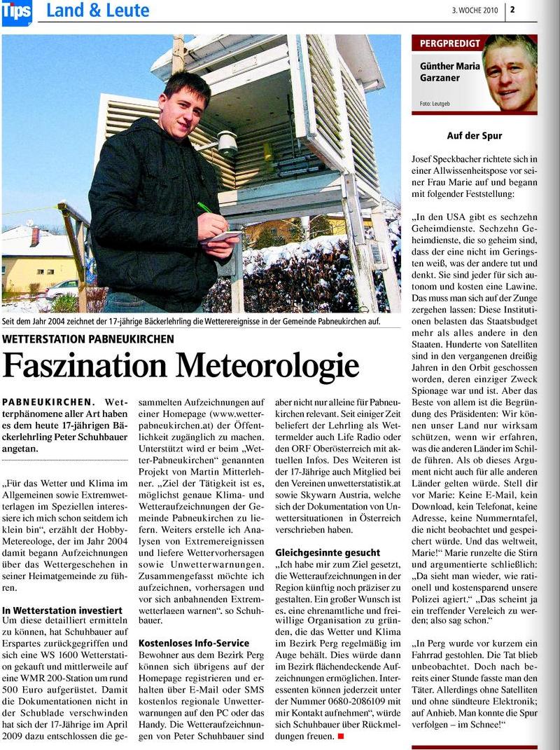 News: Bericht über Wetter-Pabneukirchen in den Perger Tips!: